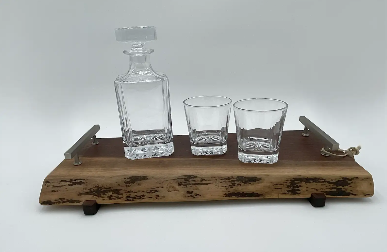Contact JH Hardwoods at 316-207-1080 for custom wood barware and wine racks.