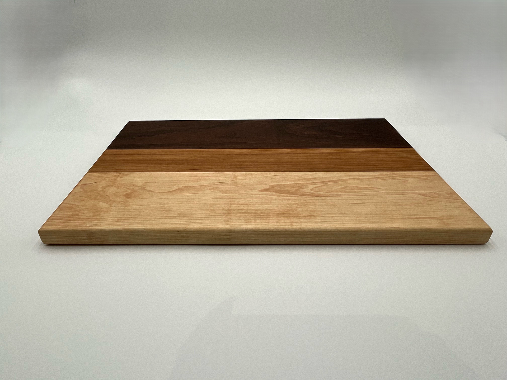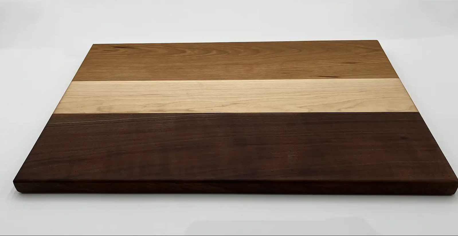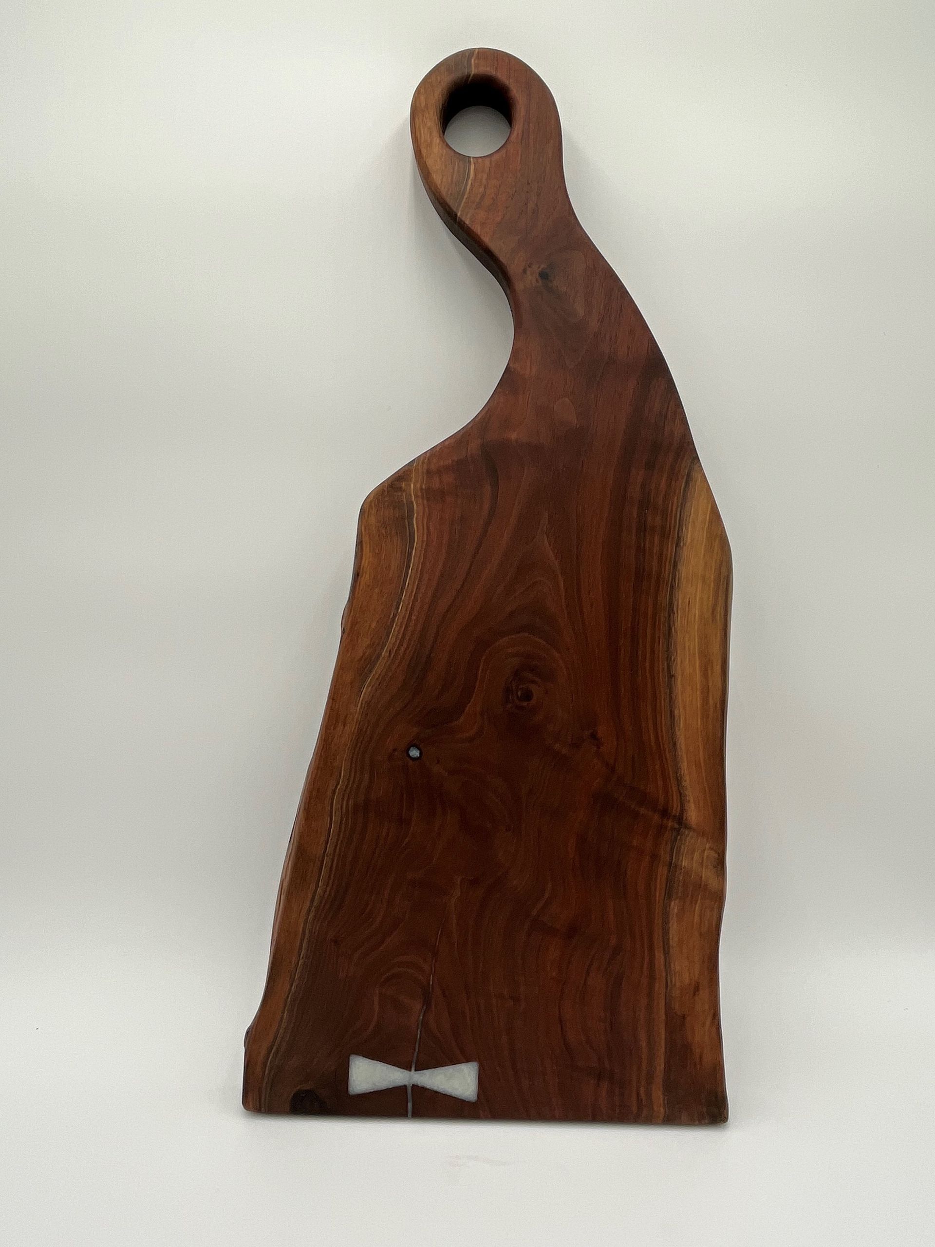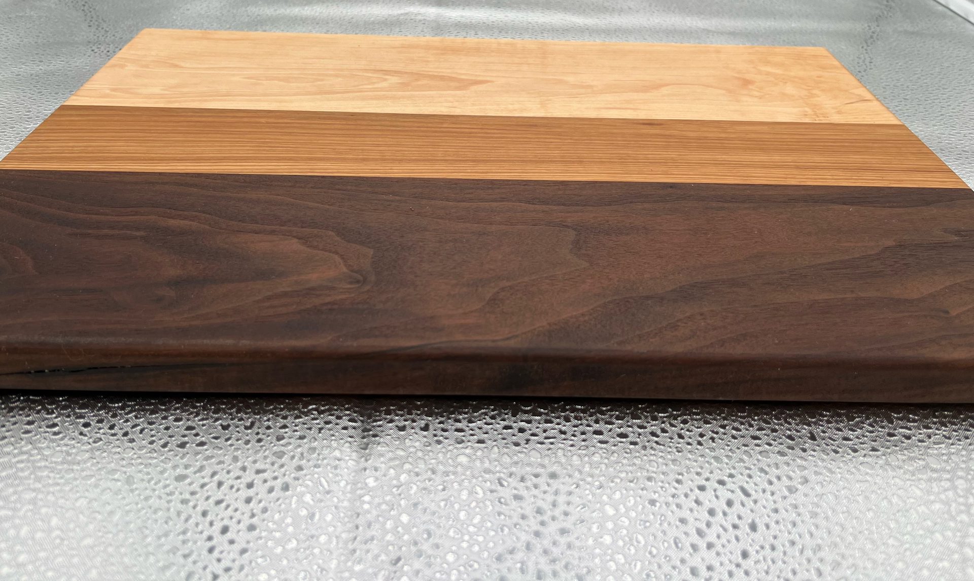 Padauk,Cherry, Lacewood, and Maple Cutting Board With Gold/Silver Handle