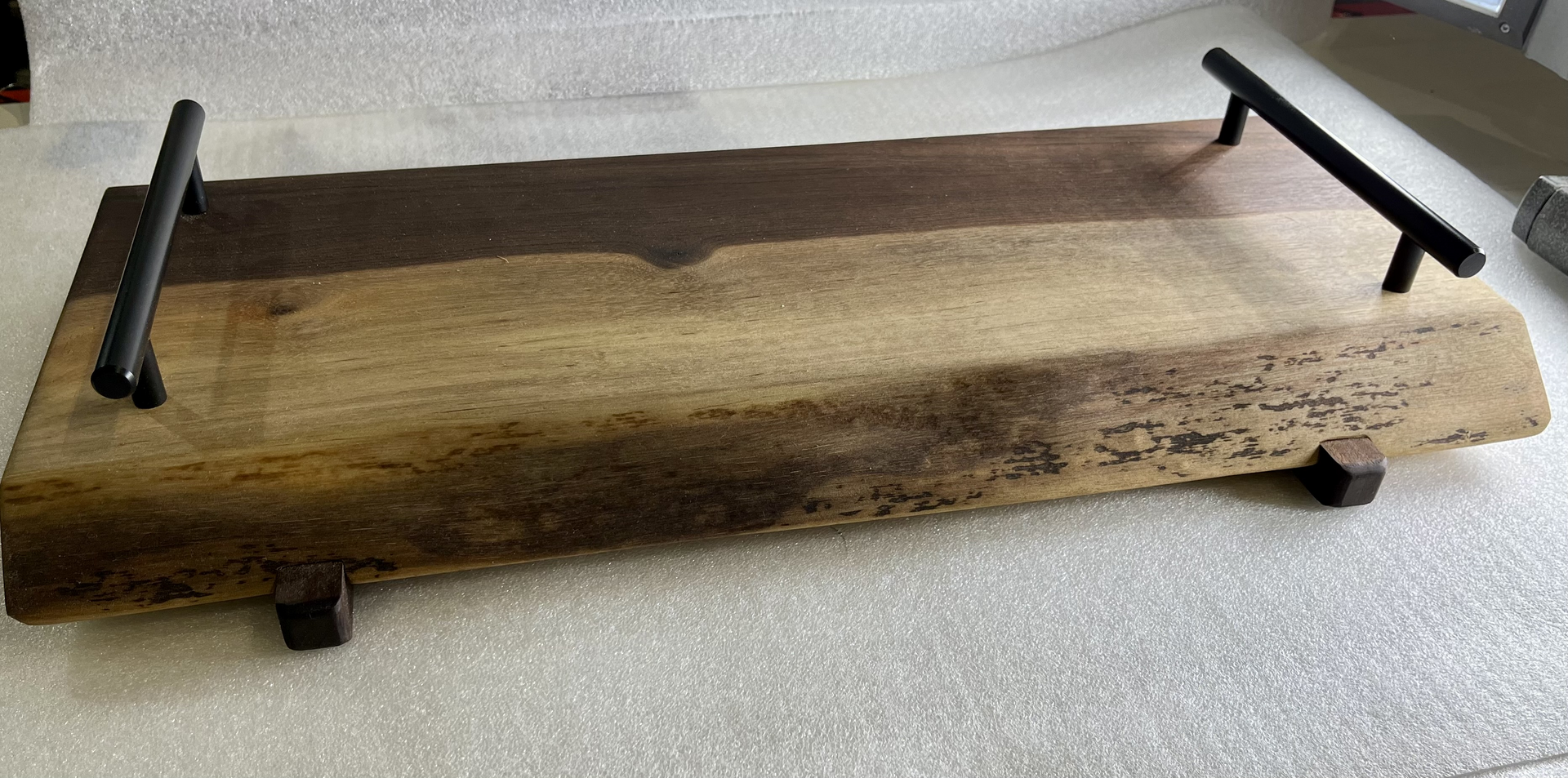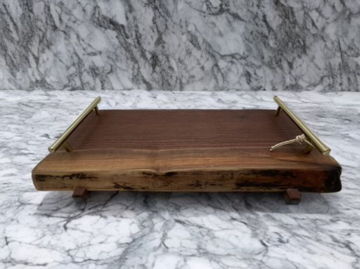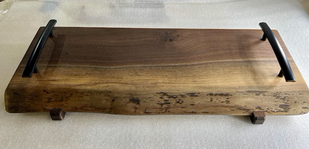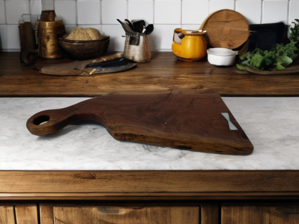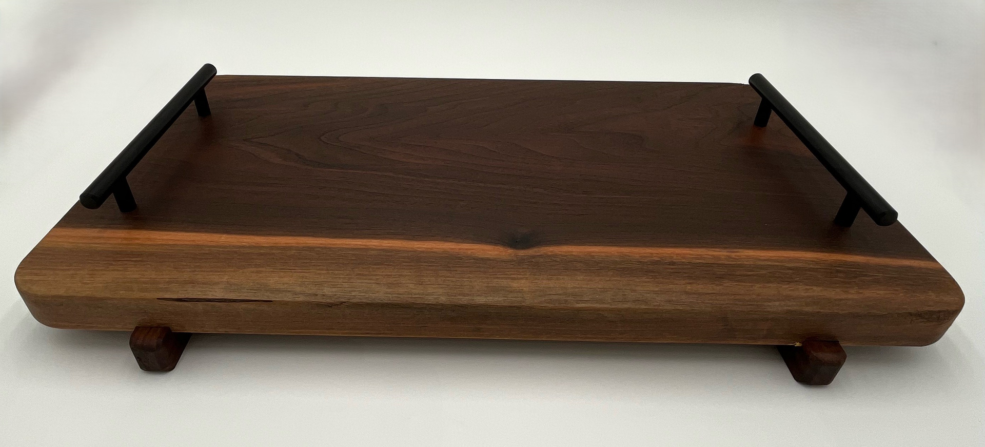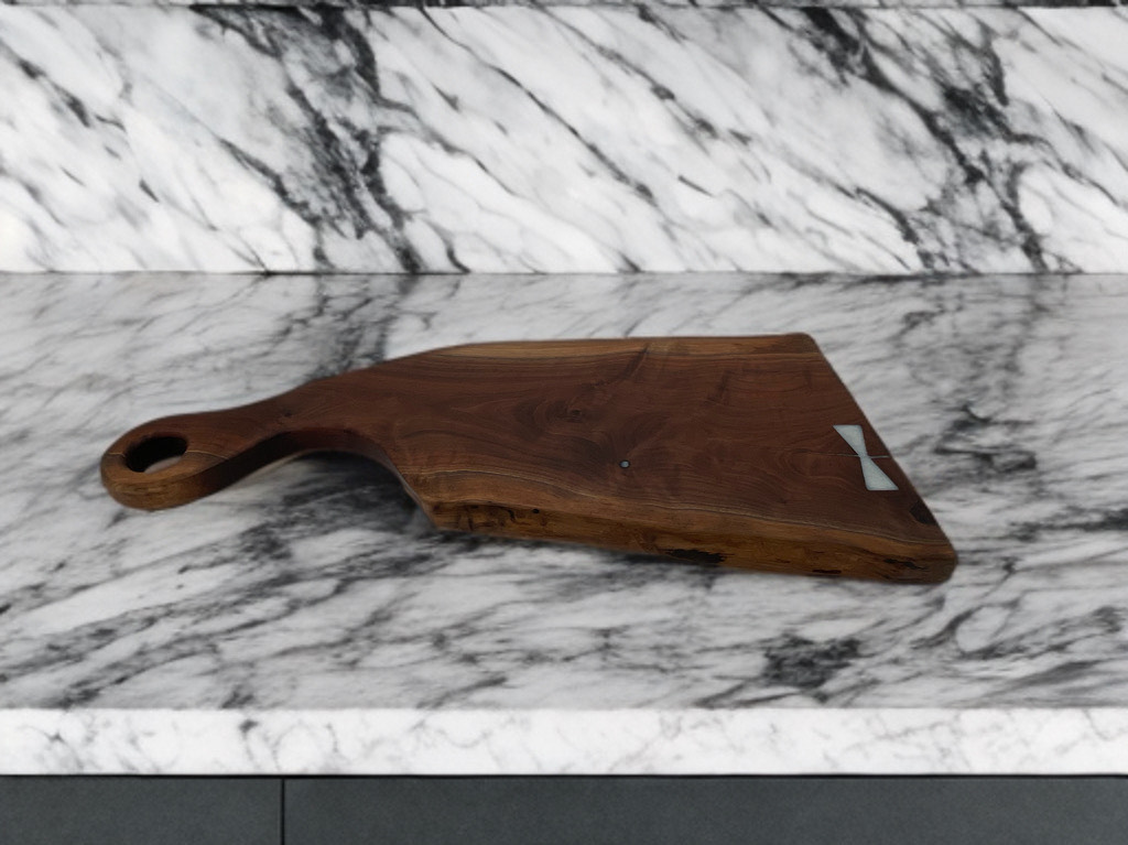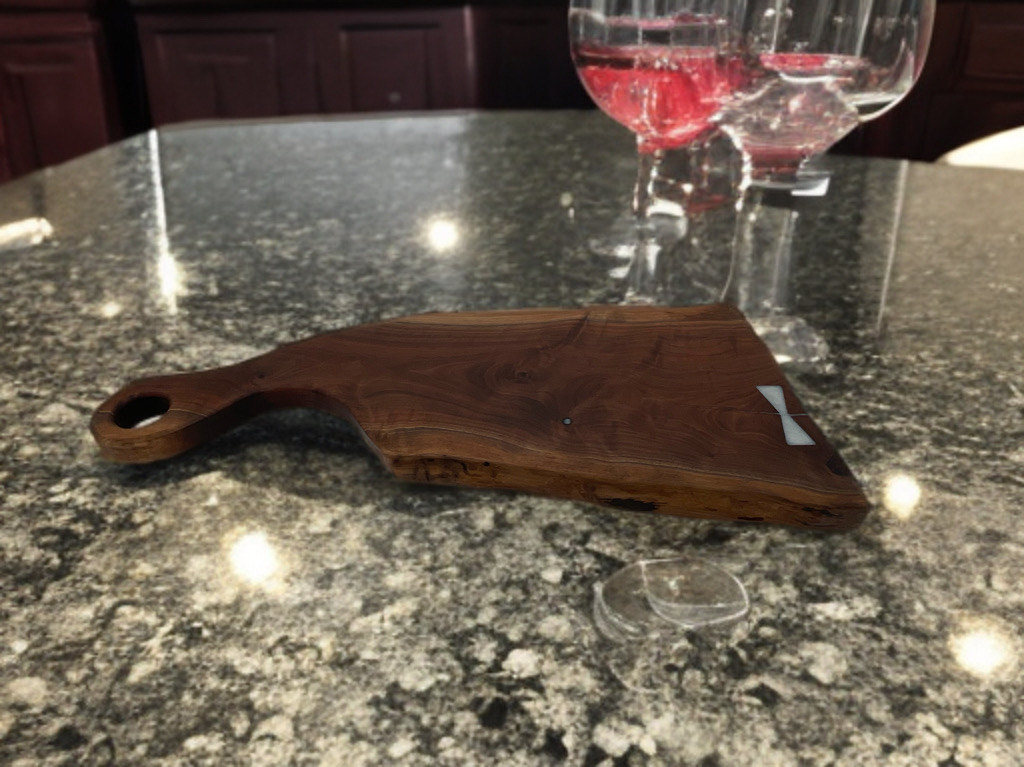 Padauk,Cherry, Lacewood, and Maple Cutting Board With Gold/Silver Handle