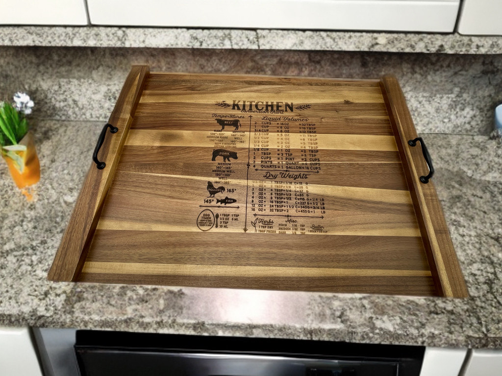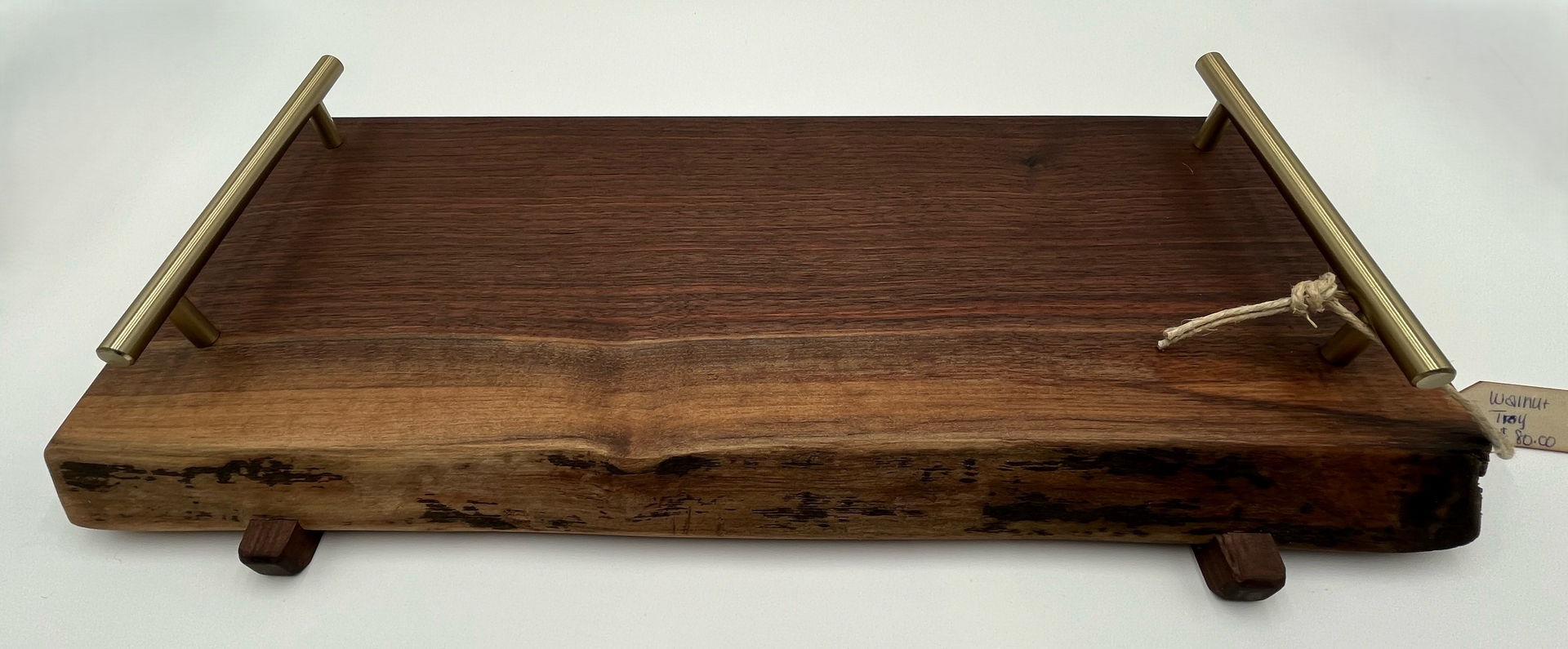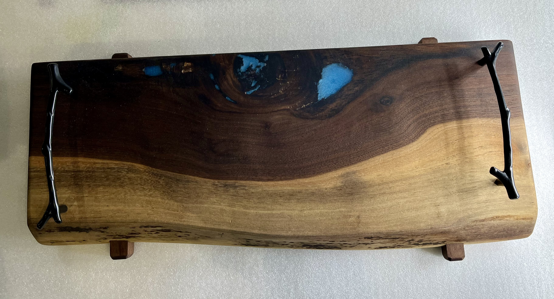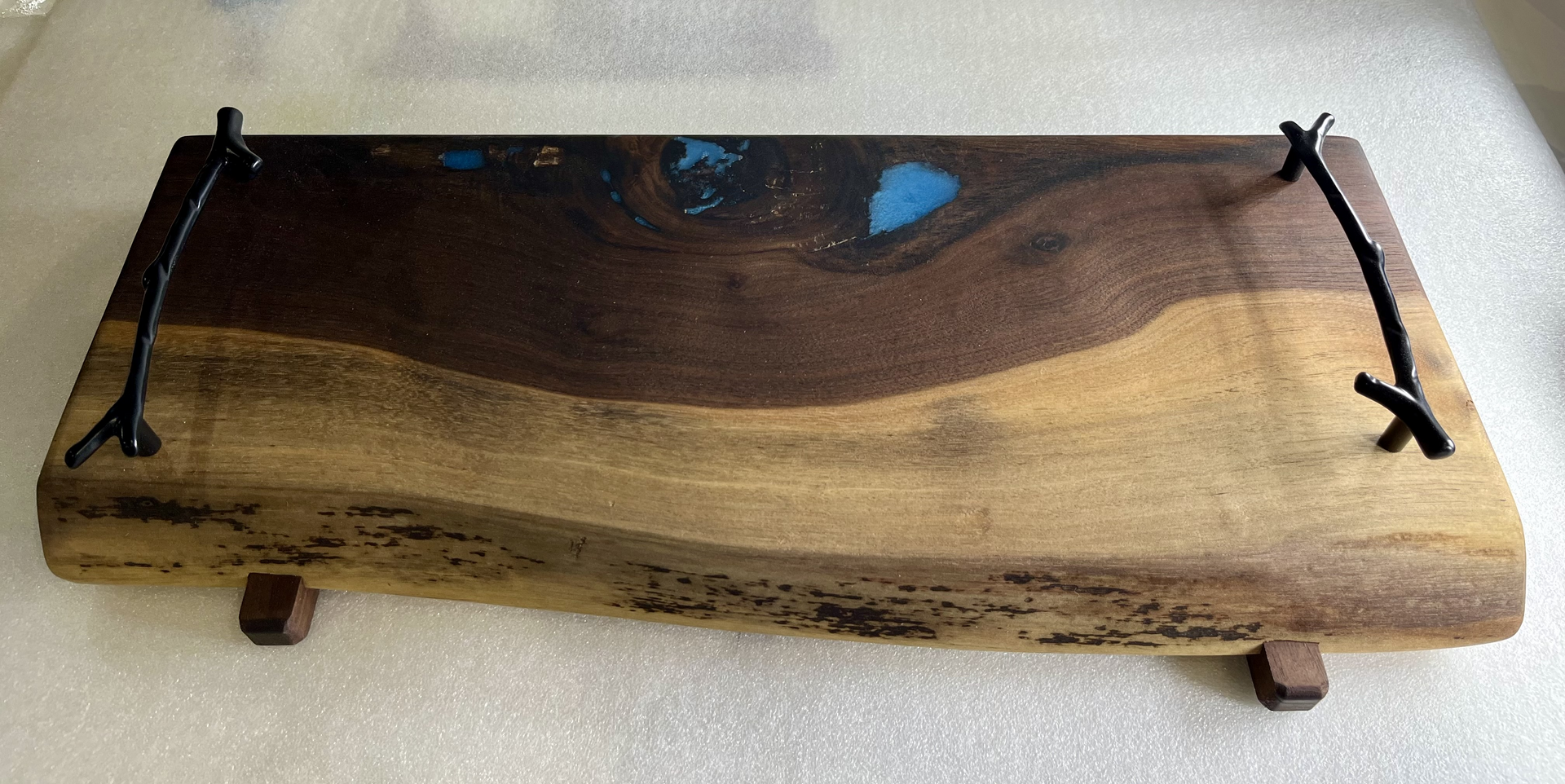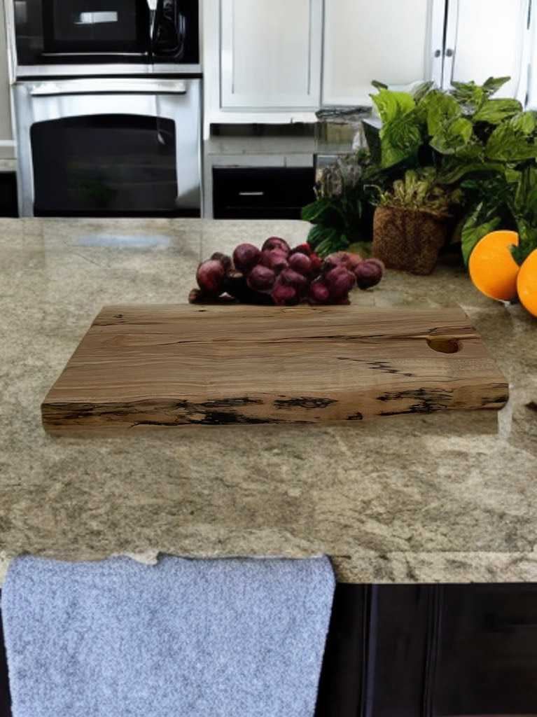 Padauk,Cherry, Lacewood, and Maple Cutting Board With Gold/Silver Handle
