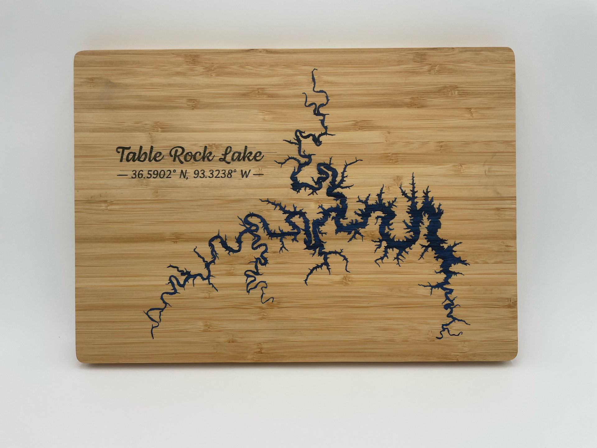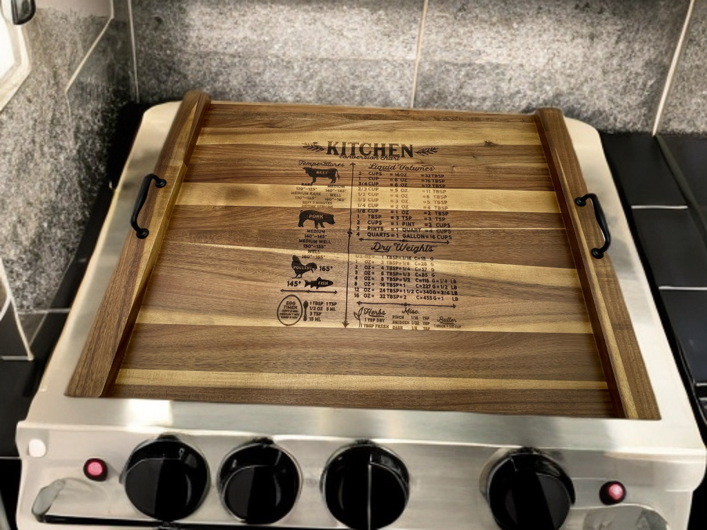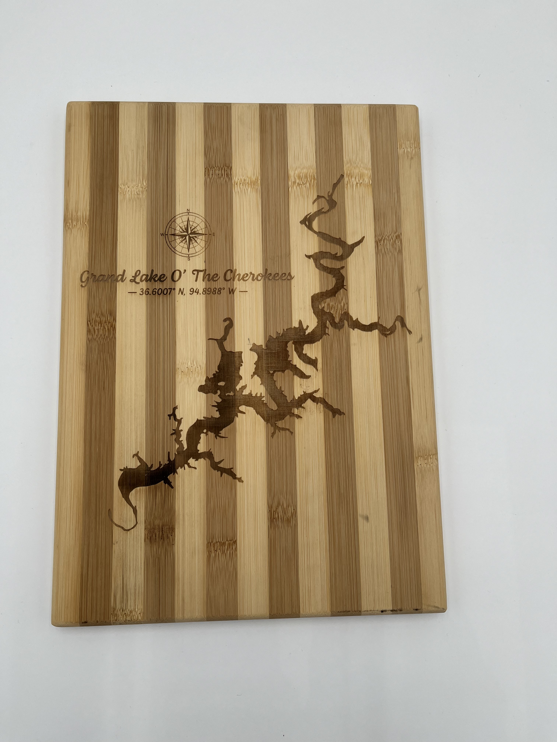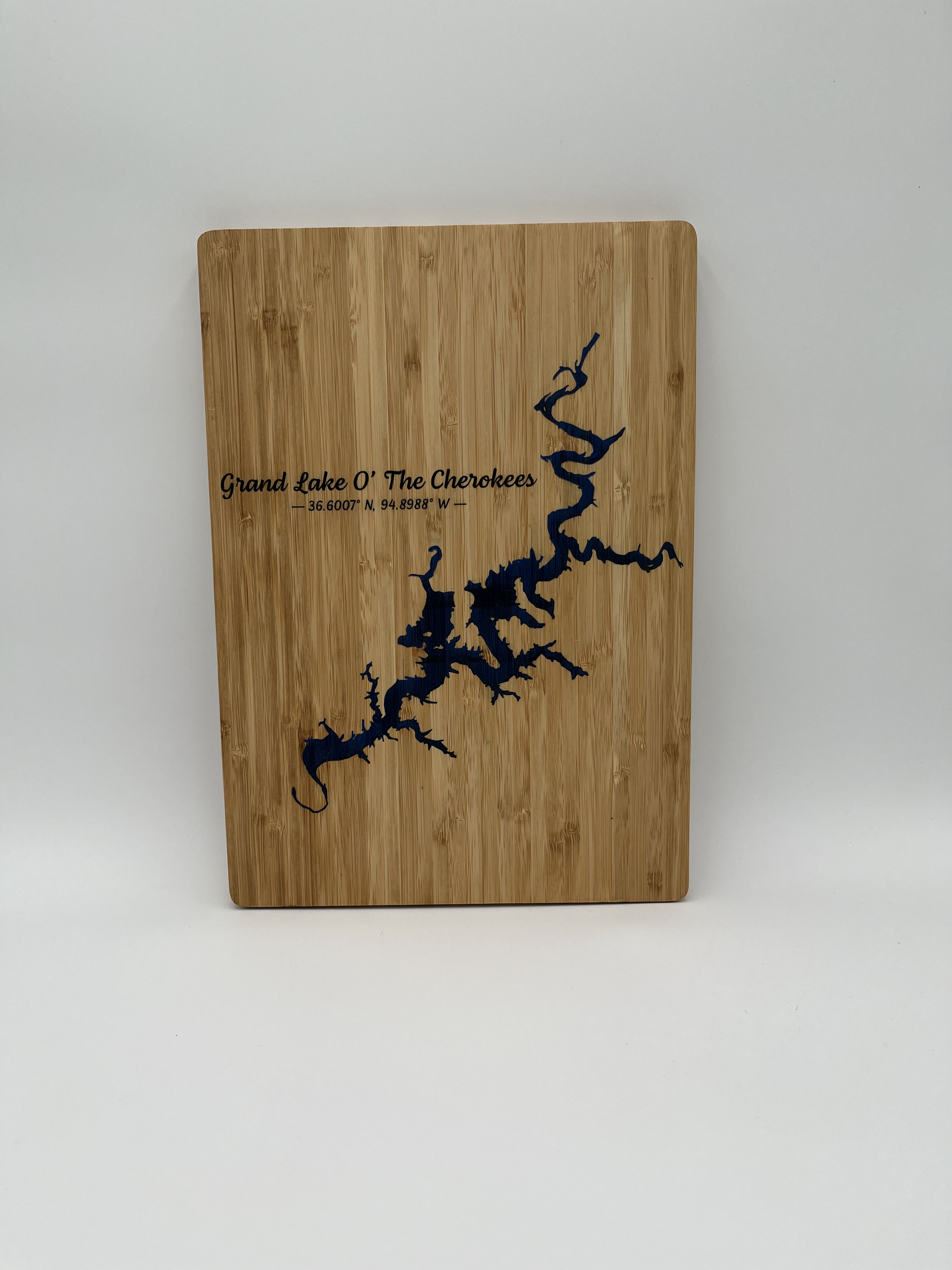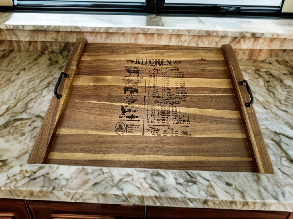 Padauk,Cherry, Lacewood, and Maple Cutting Board With Gold/Silver Handle